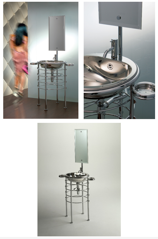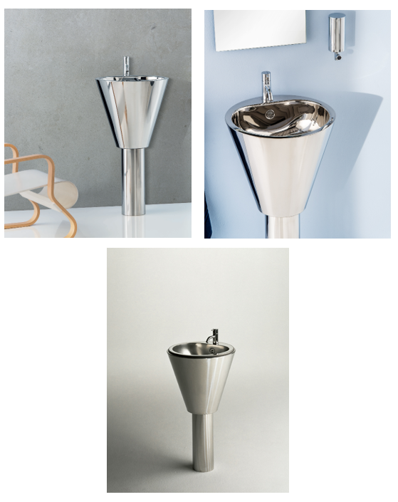 Euclide, lavabo free-standing en acier inox appelé « Tour d’eau » - Design Finn Skodt & Studio Rapsel - 1984