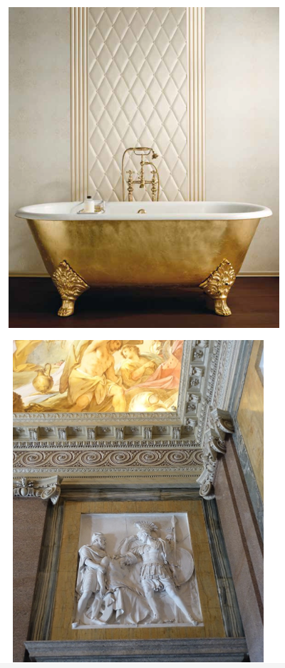 -Collections Gentry Home : baignoire Quartz Stone blanc, baignoire acier émaillé blanc/feuille d’or,