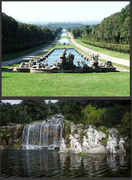 Le Palais de Caserte et son parc au nord de Naples, conçu par l’architecte Luigi Vanvitelli sur les instructions de Charles III de Bourbon, sort de terre en 1752 et deviendra la résidence de la famille Royale des Bourbons de Naples et sera appellé "Le Versailles de l’Italie" (inscrit au patrimoine de l’Humanité de l’Unesco en 1997).