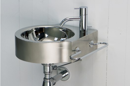 Un lavabo mural en acier version simple, avec ou sans porte-serviette,