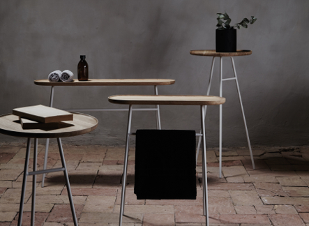 « Porte-serviettes autoportant OG200 - OG201 avec ou sans plateau en Chêne Sauvage (S3). Finition de la structure en Laque mate Blanco 200M texturisé