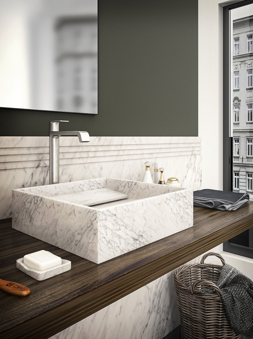 disponible en finition marbre de Carrare / marbre noir de marquina