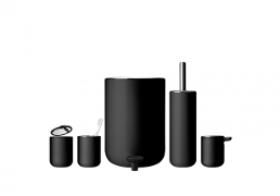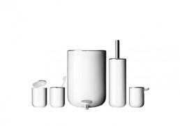 porte-brosse à dents, petit distributeur de savon, petite poubelle, porte-balai +balai brosse, grande poubelle à pédales, porte-serviettes, petit miroir murale.... »
