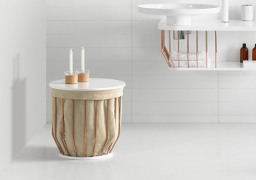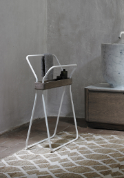« Porte-serviettes cod.TR260 autoportant avec plateau en Chêne Sauvage (S3). Finition de la structure en Laque mate Blanco Hueso 233M, texturisé
