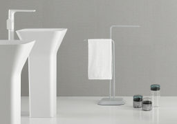 « Porte-serviettes auto-portant cod.BV264 avec plateau en Laque mat Blanco 200M. Finition de la structure en Laque mate Blanco 200M texturisé