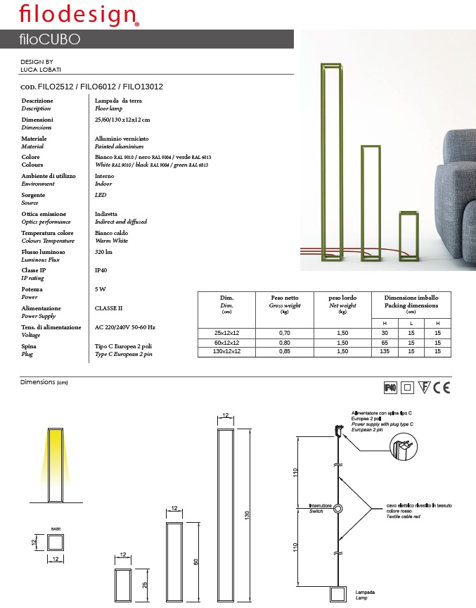 Dimensions : L.12 x l. 12 x h. 25 cm