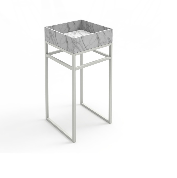 « Support métallique en acier laqué blanc RAL 9010 pour lavabo