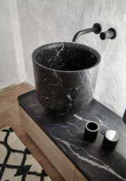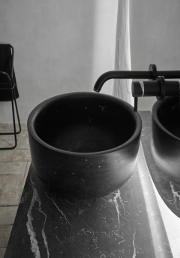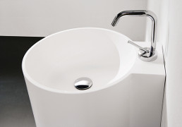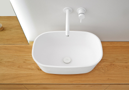 « Lavabo FONTAIN à poser sur ou sous le plan de toilette en Solidsurface mat avec bonde pour évacuation. Sans déversoir.