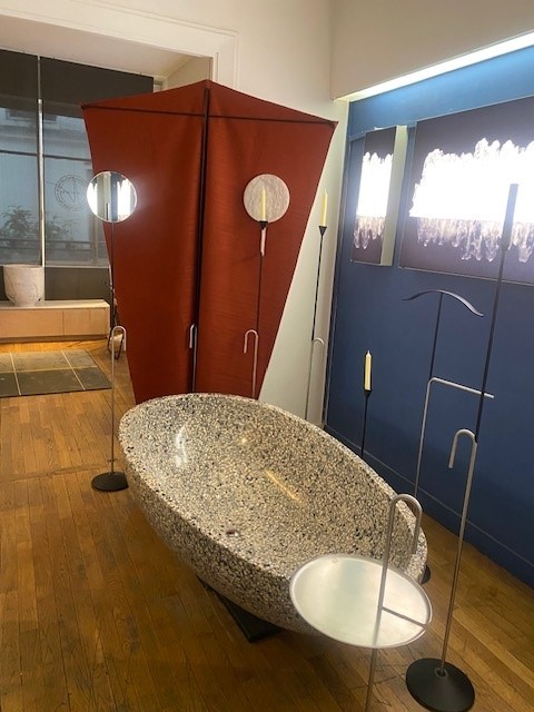 Nous vous proposons aujourd’hui la magnifique baignoire en terrazzo que nous avons développée il y a quelques dizaines d’années, modèle appelé OO de la Pool Position, utilisant le terrazzo, un matériau traditionnel héritier de l’Antiquité et de la Renaissance…combiné avec le savoir-faire des chantiers navals pour les coques de bateaux.
