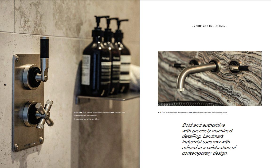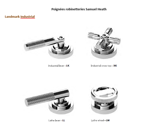 L’offre de commandes Landmark est renouvelée avec l’ajout de poignées uniques à levier ou volant tournant, reprenant des éléments de design des collections Industrial et Pure. Le nouveau levier tournant cannelé, présente une silhouette droite et audacieuse, et une poignée à motif cannelé à roue type volant, procure une sensation de luxe à chaque tour. La nouvelle poignée à volant fait référence à la roue circulaire d’un tour manuel, un équipement traditionnel encore utilisé pour la fabrication de divers produits dans l’usine de Samuel Heath. Le motif intriguant du diamètre extérieur de la roue est réalisé avec les mêmes machines de précision, par moletage.