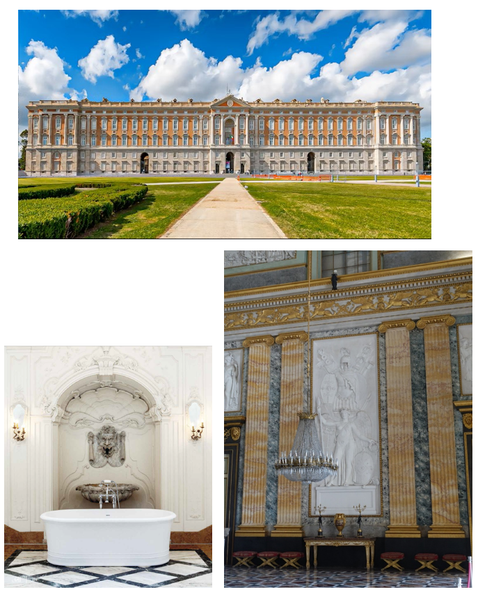 Le Palais de Caserte et son parc au nord de Naples, conçu par l’architecte Luigi Vanvitelli sur les instructions de Charles III de Bourbon, sort de terre en 1752 et deviendra la résidence de la famille Royale des Bourbons de Naples et sera appellé "Le Versailles de l’Italie" (inscrit au patrimoine de l’Humanité de l’Unesco en 1997).