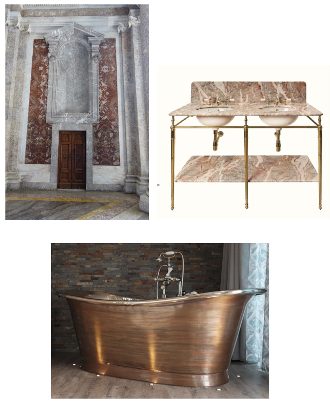– Collection William Holland : baignoires Bateau bronze/nickel et baignoire laiton doré.