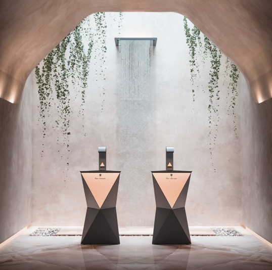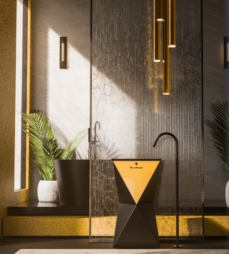 Le lavabo PRISMA, un jeu avec les lignes et les formes, entre avant-garde et glamour un retour au cubisme...