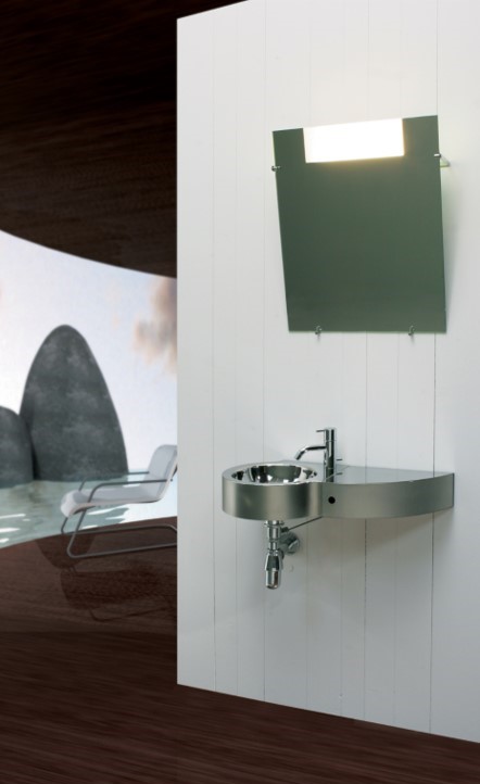 Un lavabo mural en acier version simple, avec ou sans porte-serviette,